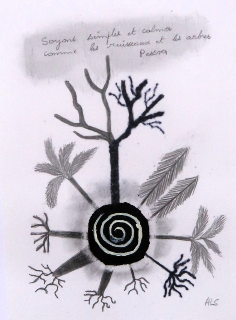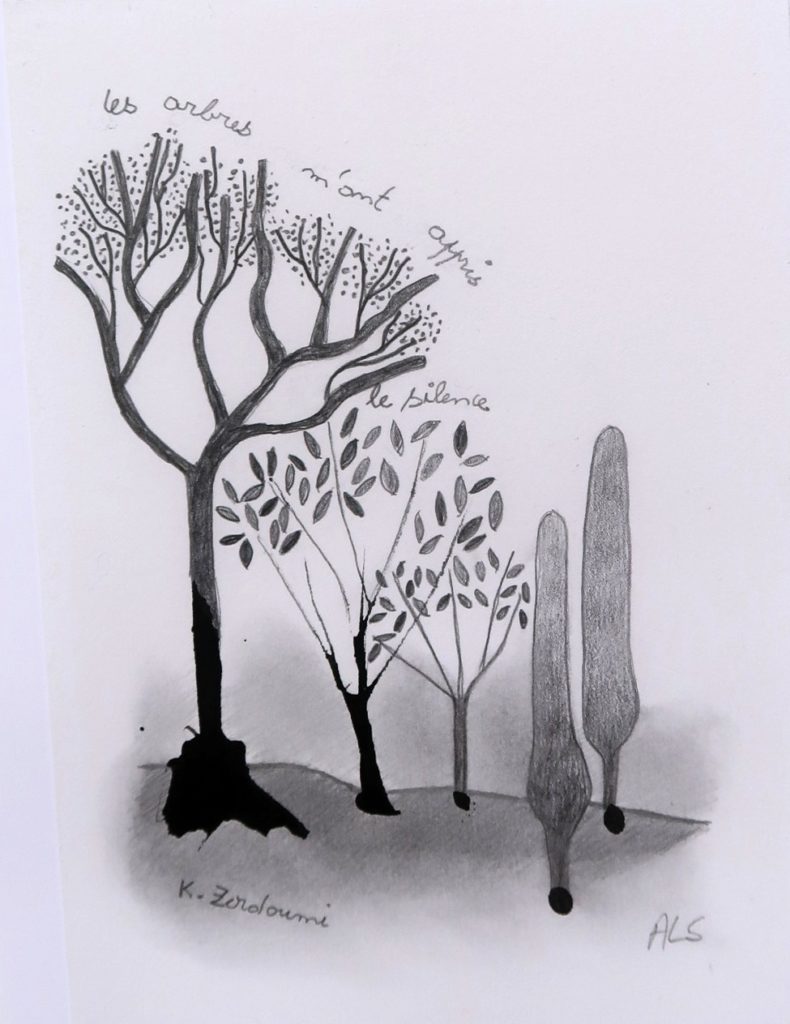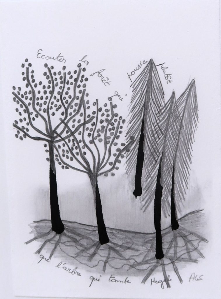 CHF 400.- Et les arbres demain? Encre de chine et crayon; 20 x 26 cm, encadré